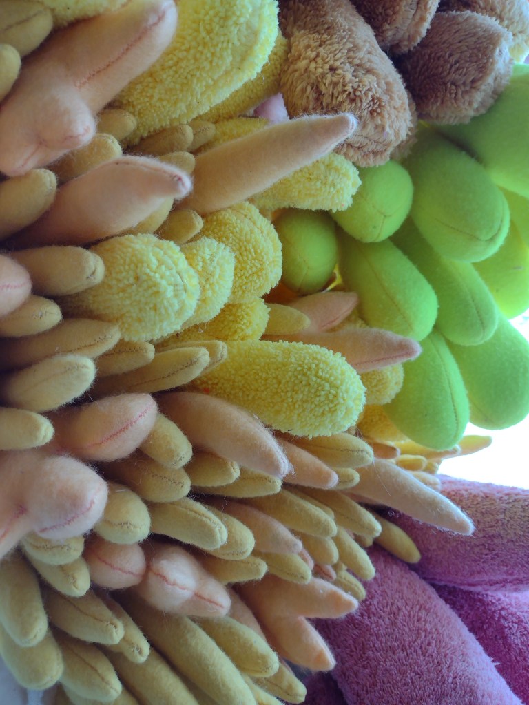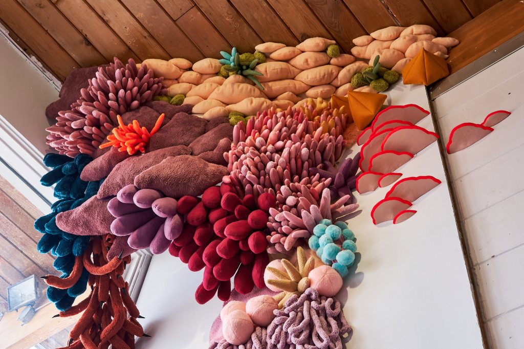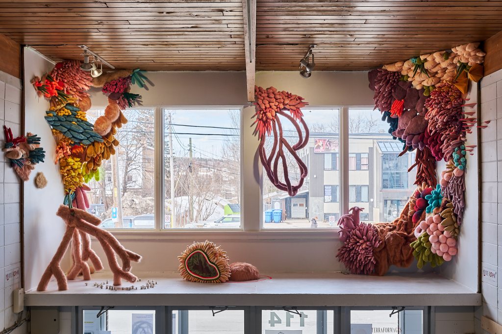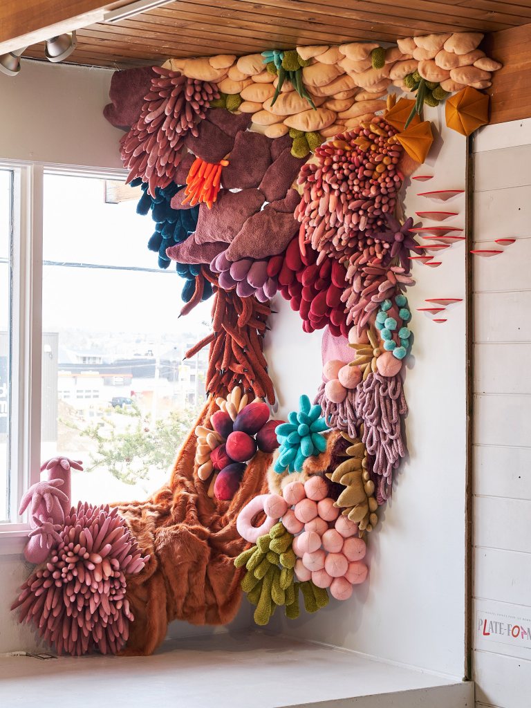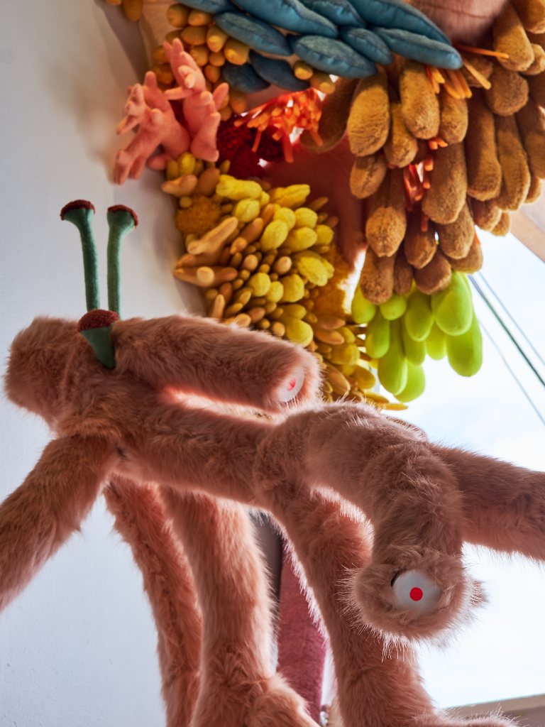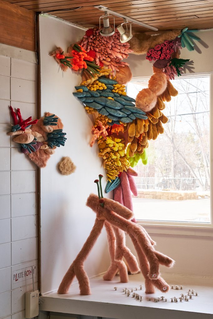 Du 6 au 15 mars 2023, j’ai eu la chance de pouvoir réaliser une installation textile lors de la résidence de la Plateforme, offerte par Le LOBE en partenariat avec les ateliers TOUTTOUT. Ces 10 jours de création intensifs, totalisant plus de 150 heures de travail, ont donné forme à Terraformages, une œuvre modulable composée de milliers de petites excroissances textiles rembourrées