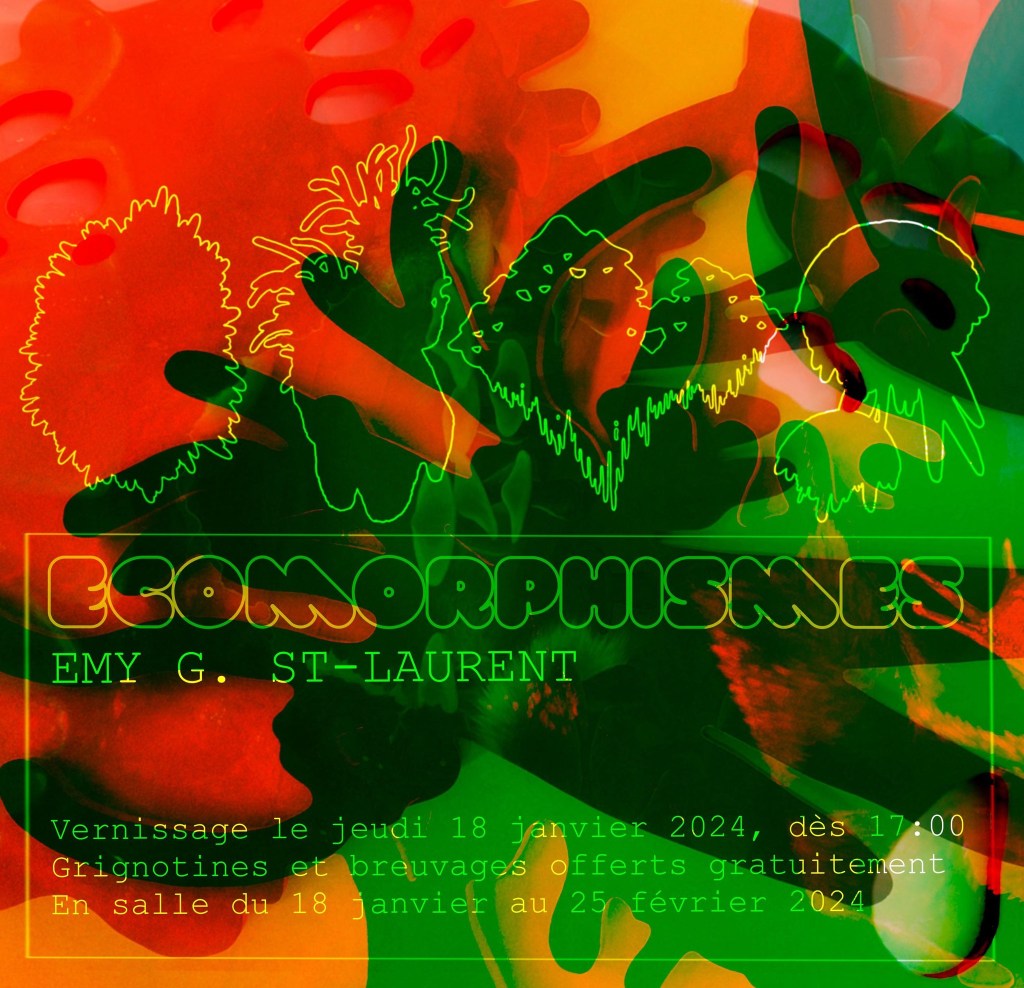 Écomorphismes sera en salle du 18 janvier au 25 février 2024 à L’Alternative au 27 Place La Salle, et accessible du lundi au jeudi de 10 à 16 heures.