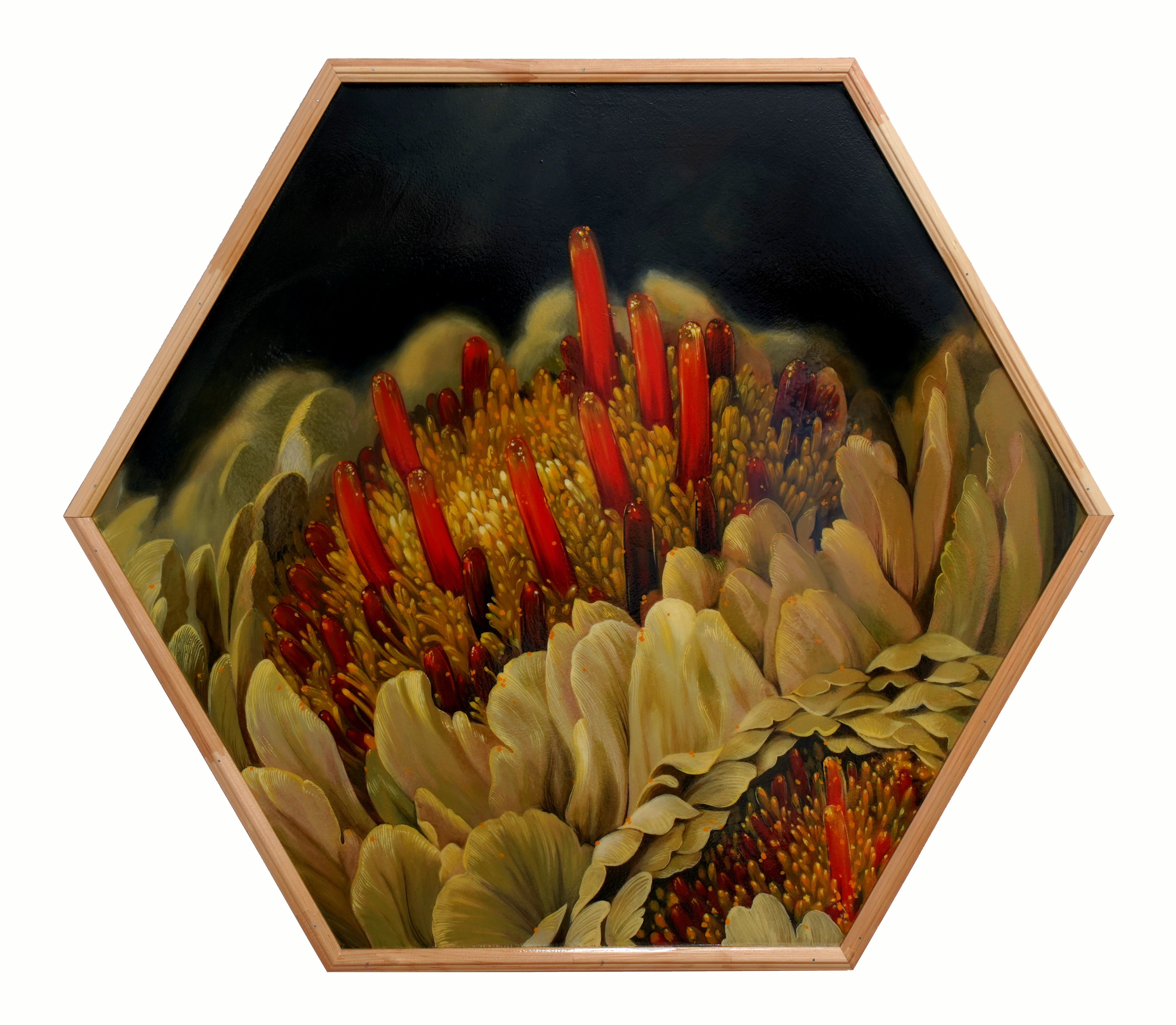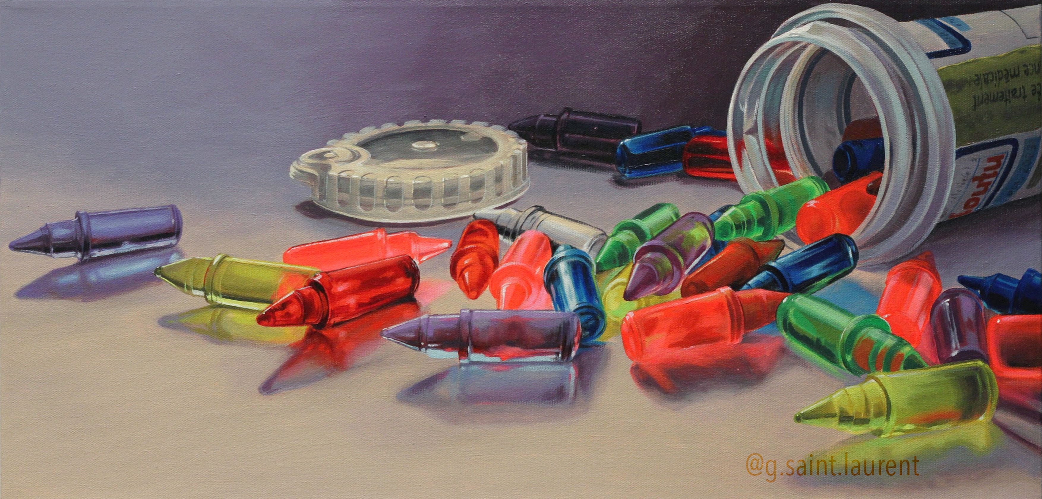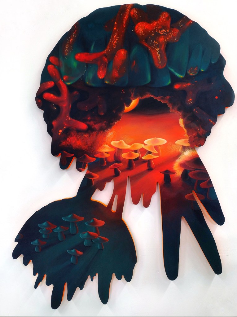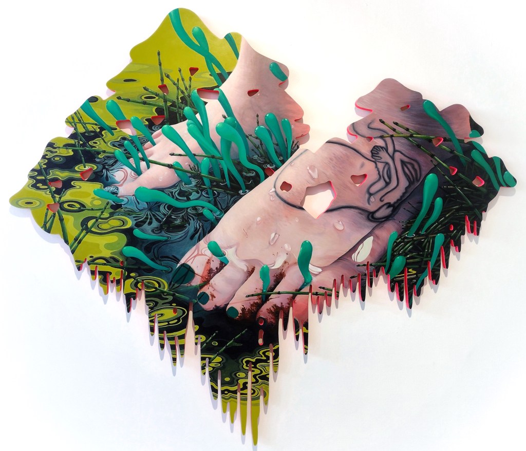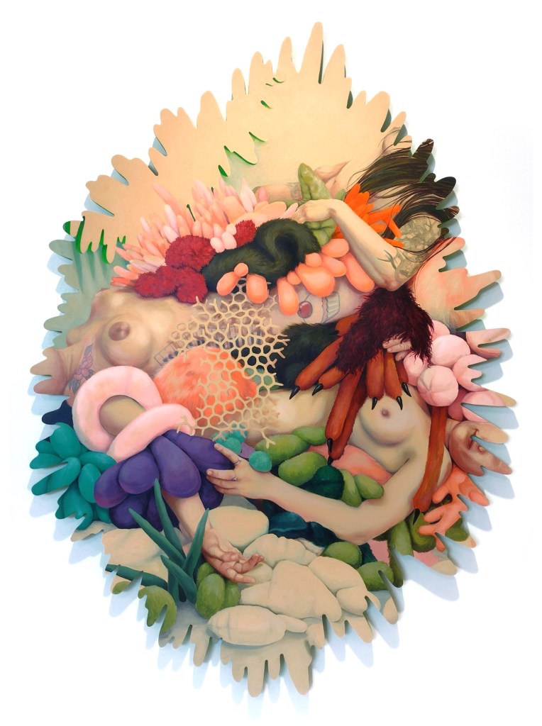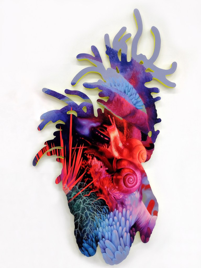 Avec son exposition Ecomorphismes, Emy G. St-Laurent nous plonge dans un écosystème coloré et complexe peuplé d’organismes hybrides possédant des caractéristiques tant animales que végétales. S’intéressant depuis son plus jeune âge à la nature et pratiquant une observation minutieuse de celle-ci, elle développe son propre environnement textile foisonnant inspiré par les études de la biologie. Ces chimères font ensuite elles-mêmes l’objet d’une analyse rigoureuse à travers une production picturale figurative réaliste. D’œuvre en œuvre se dessine ainsi une étrange généalogie faite d’interconnexions formelles entre les êtres bidimensionnels et tridimensionnels qui composent le corpus. Ce projet réalisé dans le cadre des études à la maîtrise de l’artiste vise à incarner une ode à la richesse du vivant et au plaisir de sa découverte.